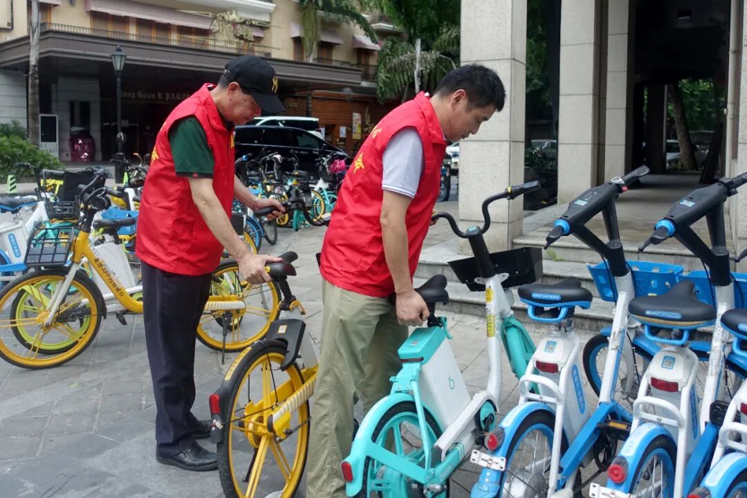 参观结束后,组织党员到岭南天地对出共享单车停车场把随意摆放的单车摆放到指定的区域内,同时劝阻乱停放的路人把车辆摆放在规定位置。对于有损坏需要维修的车辆也进行集中摆放,方便后续修理人员处理。